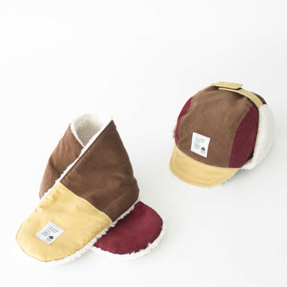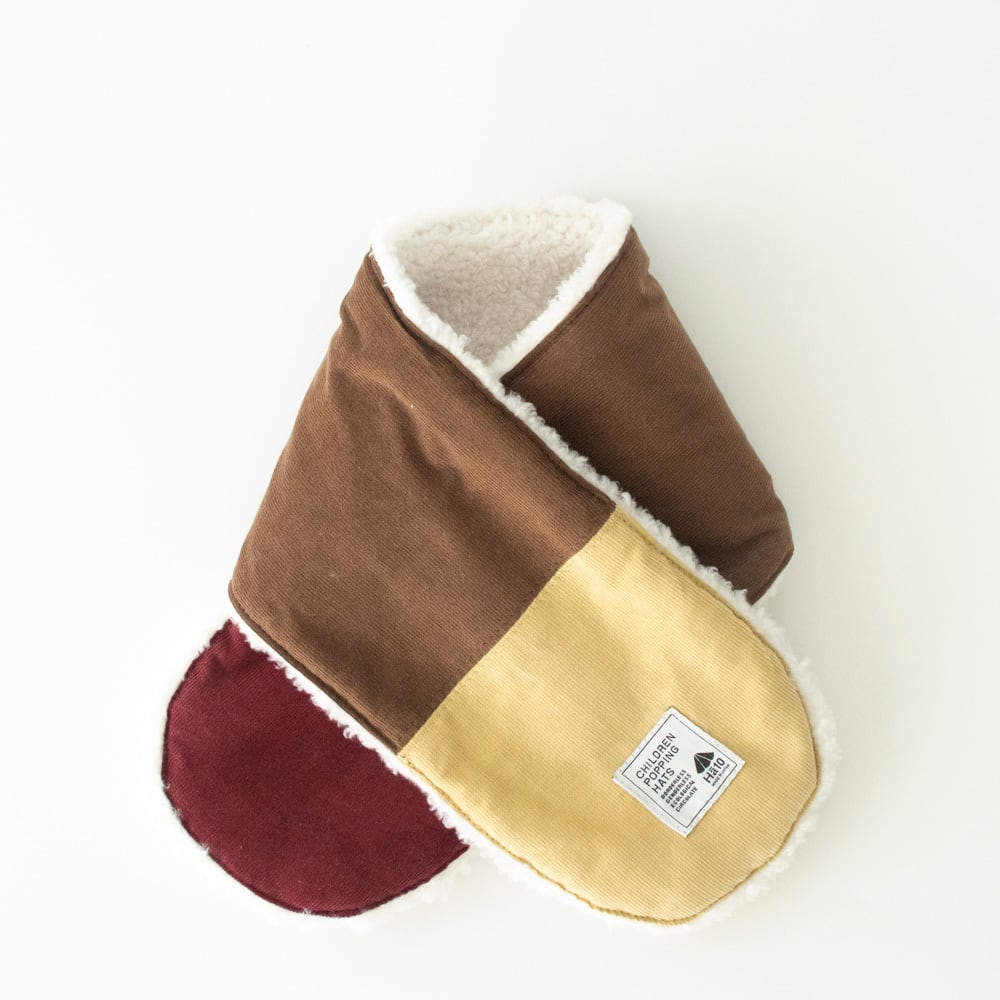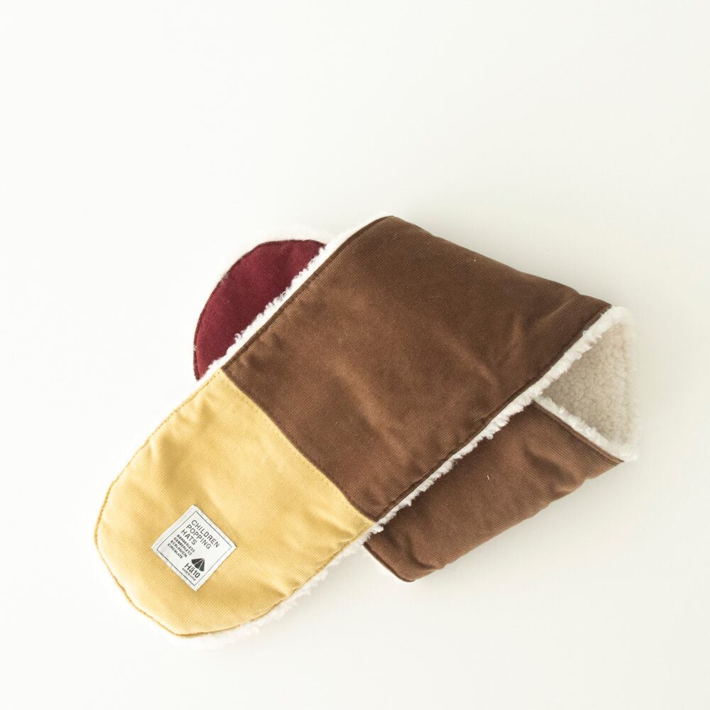 表地はコットン100%のコーデュロイ、裏地は肌触りの良いボアを。