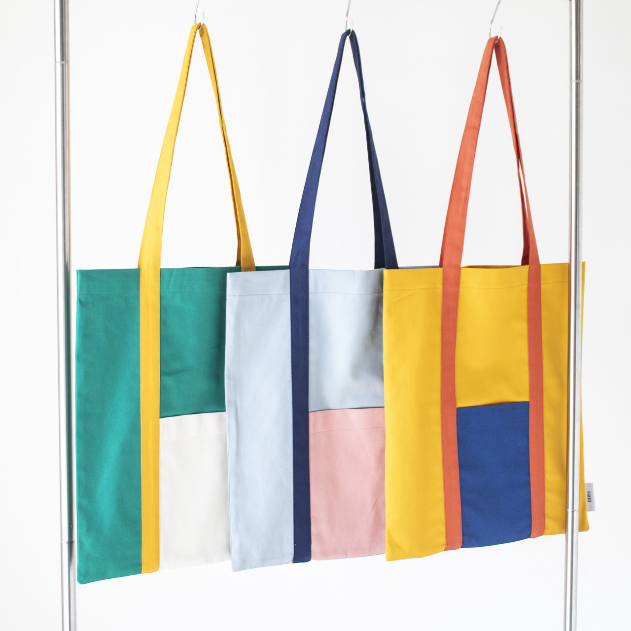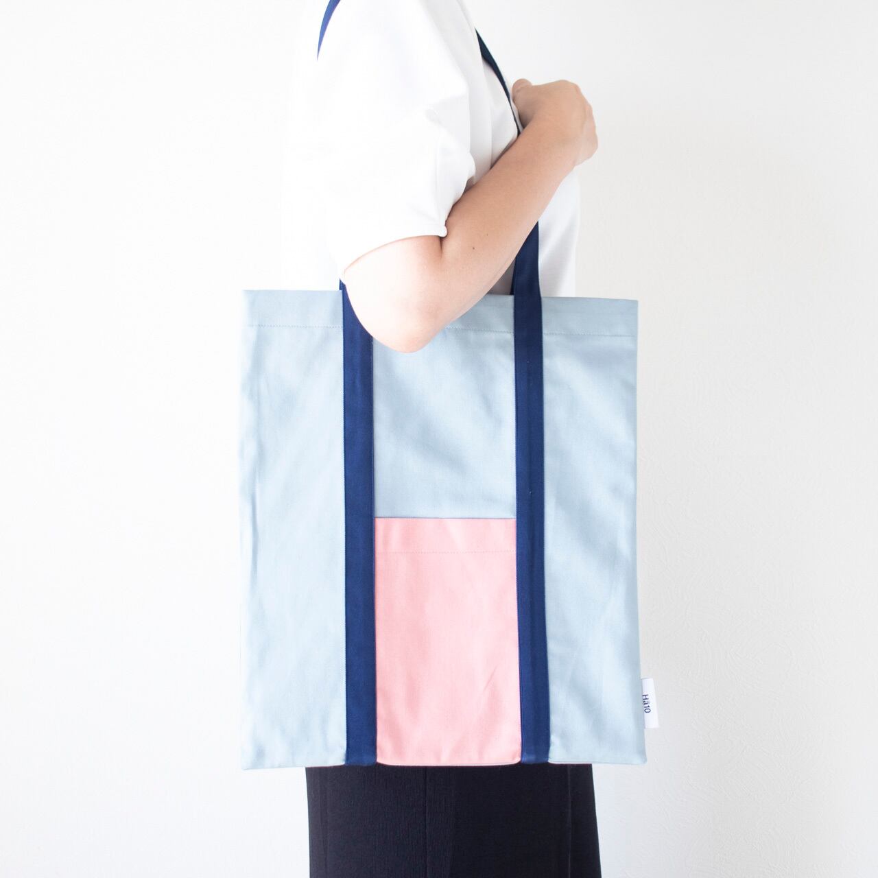 本体とポケット、持ち手、ループの色を変えて、Ha10らしい遊び心あるデザインに仕上げました。