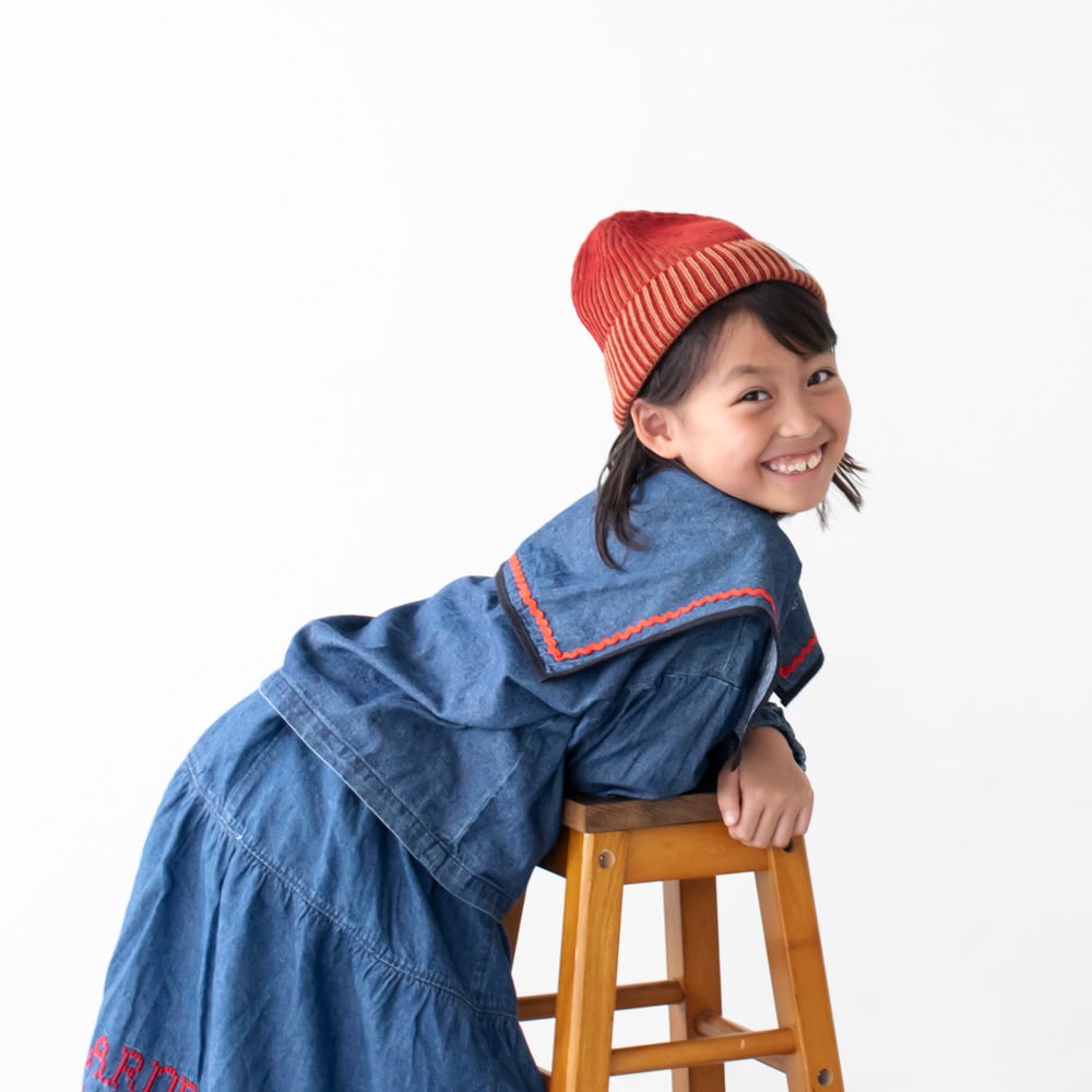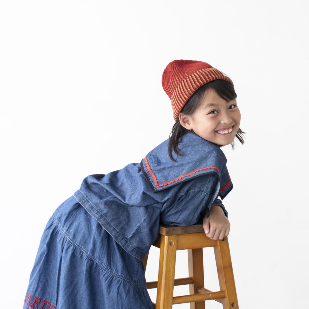 ニットキャップ【ストライプレッド】52cm ブランド 子供 帽子 男の子 女の子 男女兼用 日本製 冬 キャップ ハット ビーニー キッズ ギフト